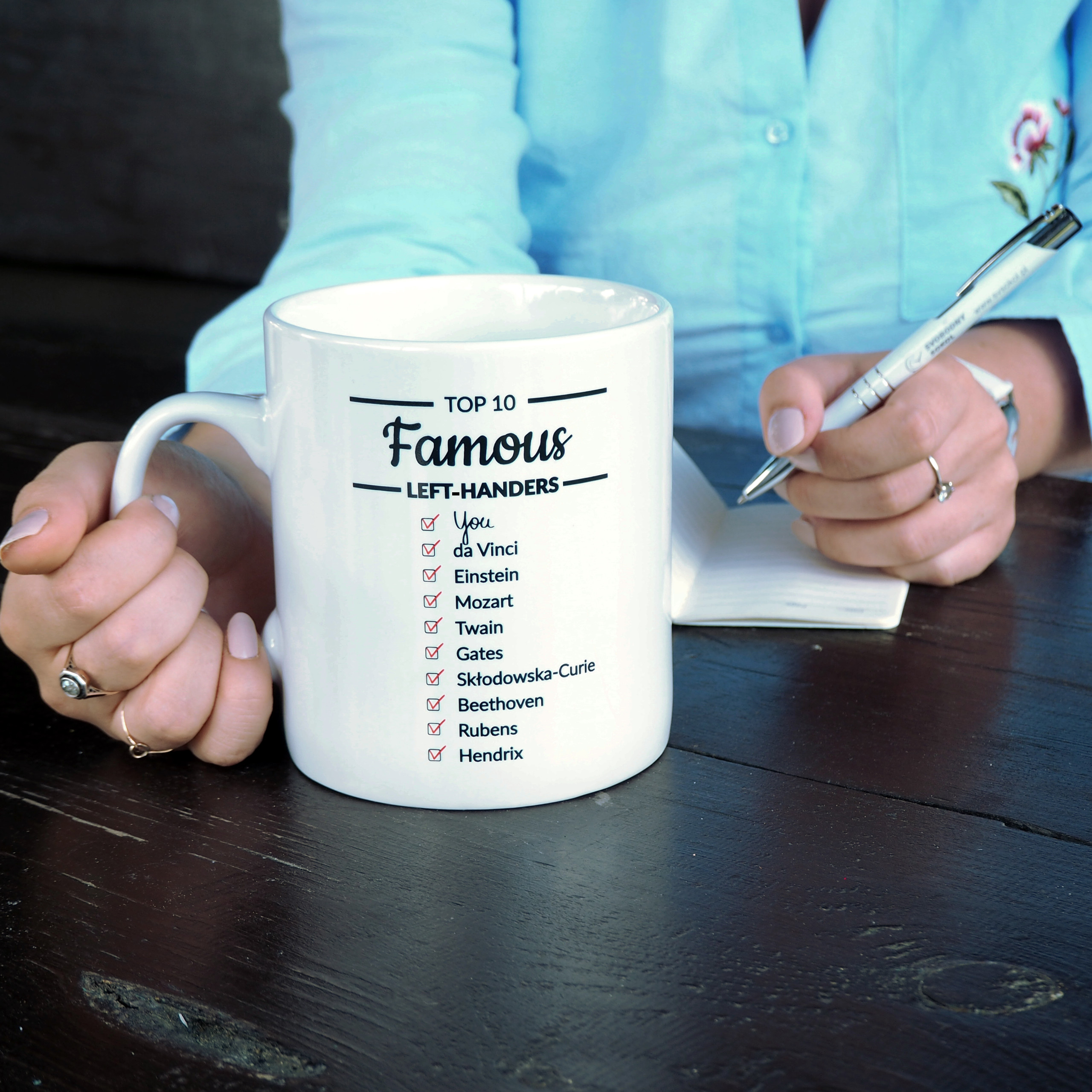 Einseitiger Druck. Aufschrift auf dem Produkt: Top 10 famous left-handers.